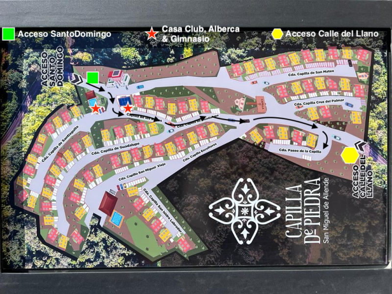 La propiedad se encuentra dentro del "Residencial Capilla de Piedra". En las instrucciones de llegada, se les enviaron 2 direcciones junto con fotografías para guiarlos.