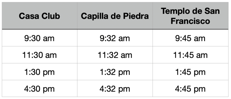 - Los horarios de regreso pueden variar debido al tráfico—llega con anticipación y ten paciencia.