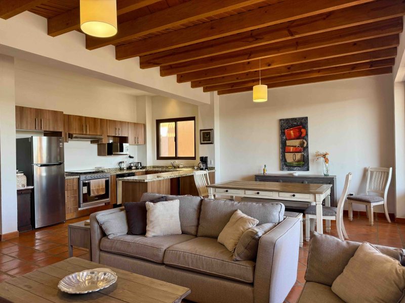 - Espaciosa área sala & comedor (concepto abierto); sala de estar con televisión, comedor para 8 personas y ventanal con visas panorámicas.